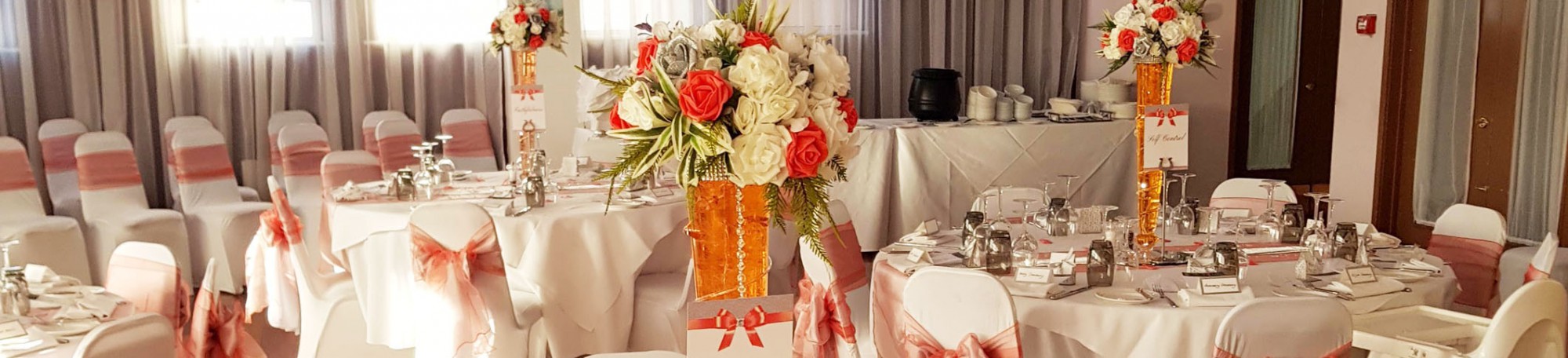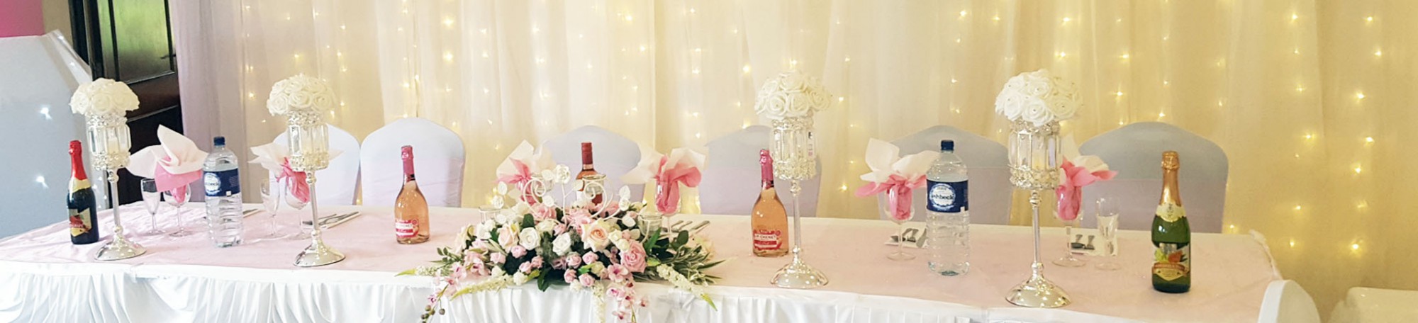 From balloons to floral designs for all occasions, we provide all types of decorations. Back drops with fairy lights, chaircovers, a range of vases and centerpieces to hire & to suit all types of venues. (halls, churches, marquees to name a few.)