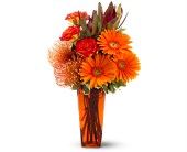 Autumn Leaves with Gerbras reds/oranges/yellows