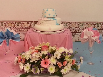 Blue Ribbon Candles with Rose Garland for Top/Cake or Guest Tables